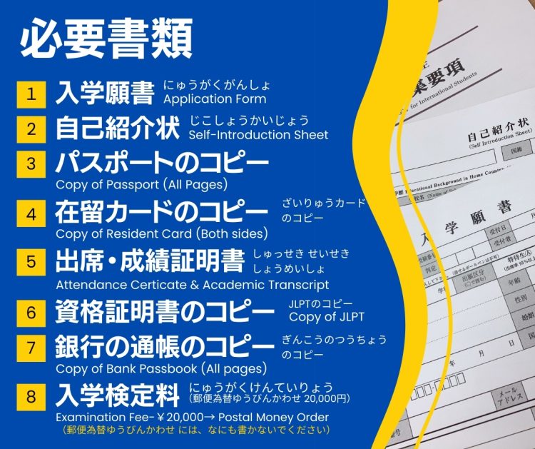 ※専門学校に在学中の方は日本語学校(卒業証明書・出席成績証明書)専門学校(在籍証明書・出席成績証明書)両方必要です