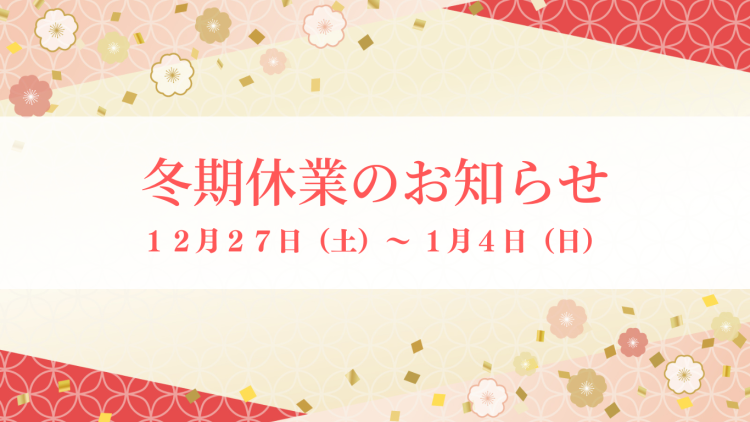 冬期(年末年始)休業のお知らせ(12/27(土)~1/4(日))